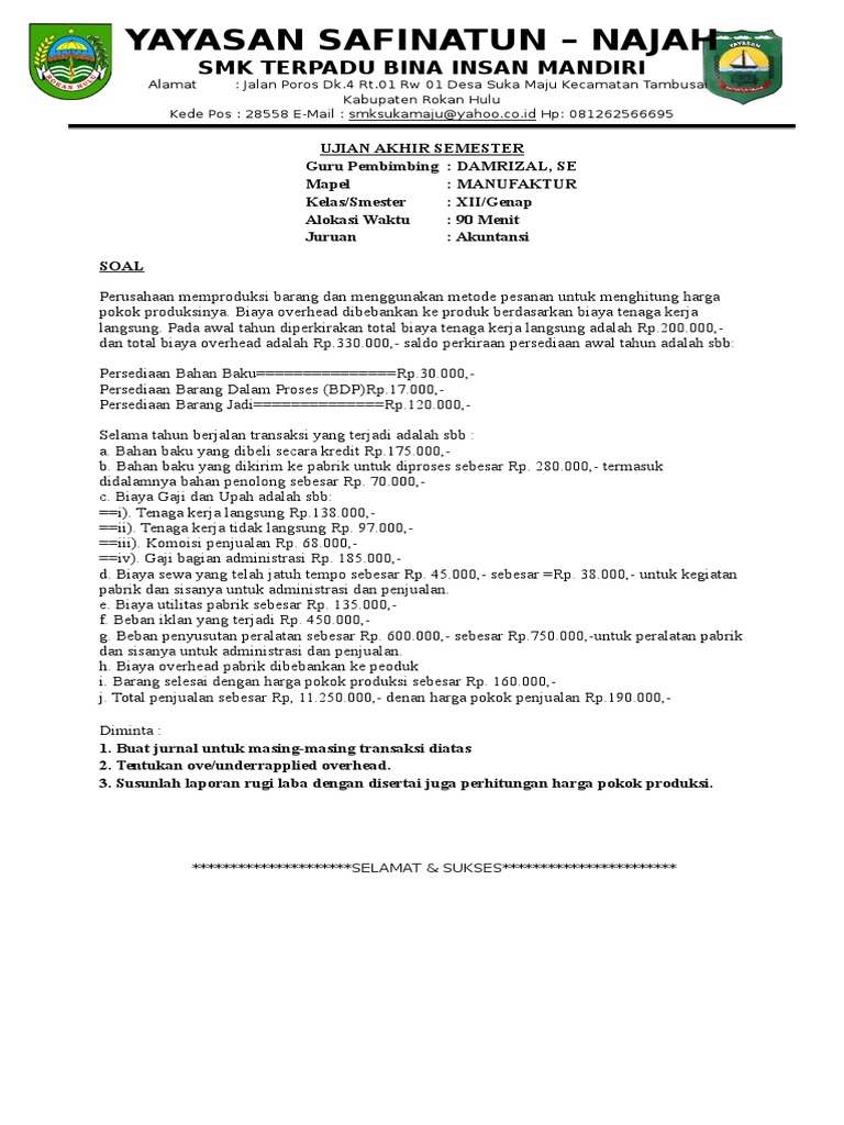 Soal Dan Jawaban Manufaktur Kelas 12 : Contoh Soal Lengkap Jurnal Penjualan Dan Pembelian Perusahaan - Soal dan jawaban manufaktur kelas 12.. Maybe you would like to learn more about one of these? We did not find results for: Check spelling or type a new query. Soal dan jawaban manufaktur kelas 12.